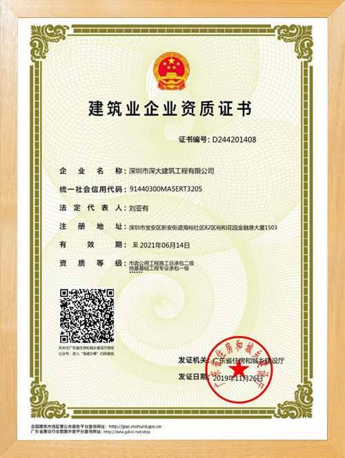 深圳市深大建筑工程有限公司,成立于2017年,注冊資本5000萬,總部位于深圳市寶安區中心地段。公司擁有地基基礎工程專業承包壹級資質,市政公用工程施工總承包二級資質,是一家一體化現代型企業。公司重視企業內部管理與發展,嚴格實施ISO管理體系,率先通過了ISO9001質量管理體系認證、環境管理體系及、職業健康安全管理體系的認證。為公司的長遠發展奠定了穩健基礎。